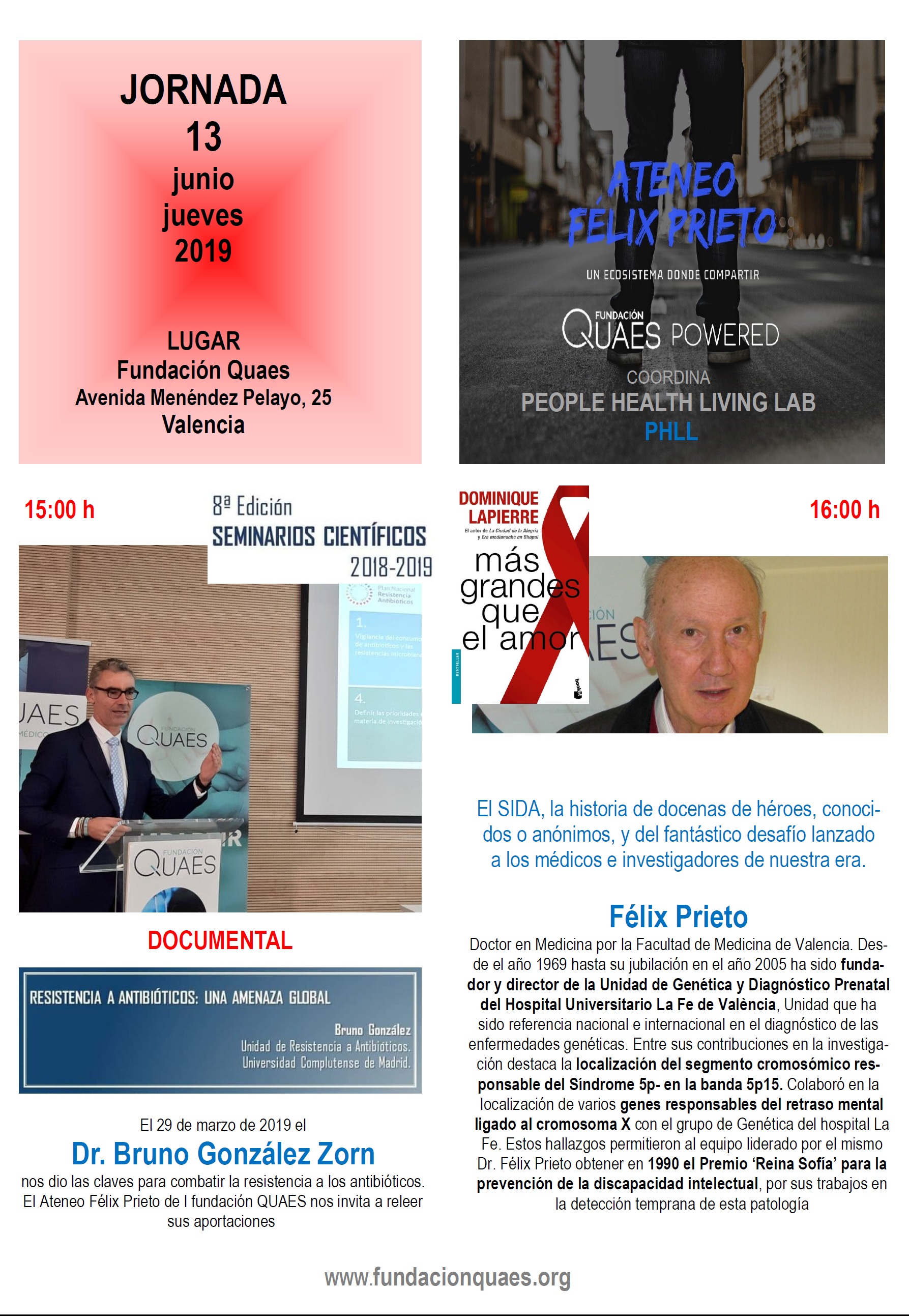 Os esperamos el próximo jueves 13 de junio en la 2 ª Convocatoria del Ateneo Félix Prieto, esta vez con el libro «Más grandes que el amor» de Dominique Lapierre, y además para todos los interesados que no pudisteis acudir al seminario «Resistencia a Antibióticos: una amenaza global» que impartió el Dr. González Zorn en nuestra Fundación, se volverá a emitir un pase privado. ¡No te lo pierdas!