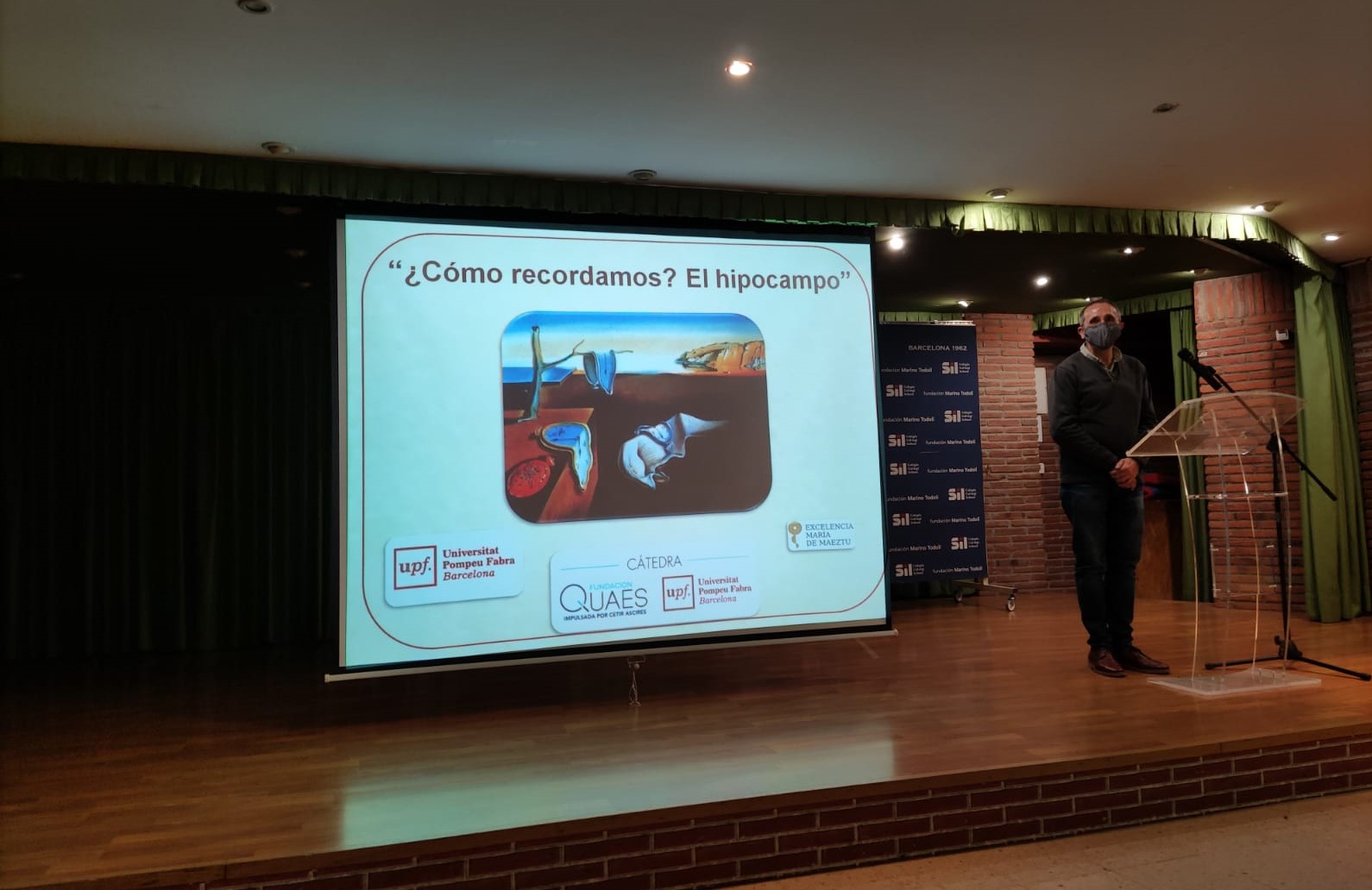 Ayer, martes 9 de noviembre, Francisco J. Muñoz, director de la Cátedra Fundación QUAES-UPF de Biomedicina e Ingeniería Biomédica, impartió una charla titulada “¿Cómo recordamos? El hipocampo” a los alumnos de secundaria del Colegio SIL de Barcelona. La charla se enmarca dentro de las actividades de generación de interés y vocaciones científicas de la Cátedra QUAES-UPF.