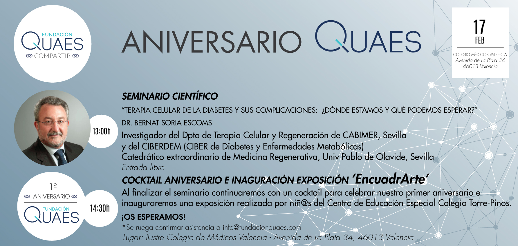 SI quieres venir al Aniversario sólo tienes que enviarnos un email a info@fundacionquaes.com con tu nombre completo.