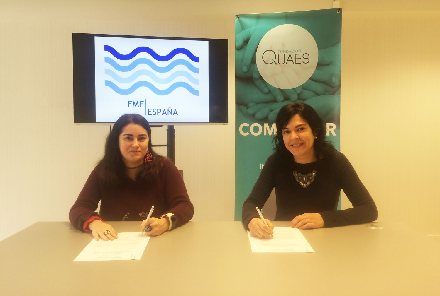 La Asociación de Enfermos de Fiebre Mediterránea Familiar y Síndromes Autoinflamatorios de España (FMF España) y la Fundación QUAES han firmado un acuerdo de colaboración. La rúbrica del convenio se hizo en la sede de nuestra Fundación, c/ Colón 1, 5ª planta, y estuvo protagonizada por la presidenta de FMF España, Mónica Tortosa, y la gerente de la Fundación Quaes, Miriam Pastor. El objeto de la alianza es trabajar en la realización de actividades que redunden en beneficio de los pacientes que padecen FMF. Esta Asociación se fundó en 2002, ingresó en FEDER en 2004, se refundó en 2014 y volvió a ingresar en FEDER en 2015.