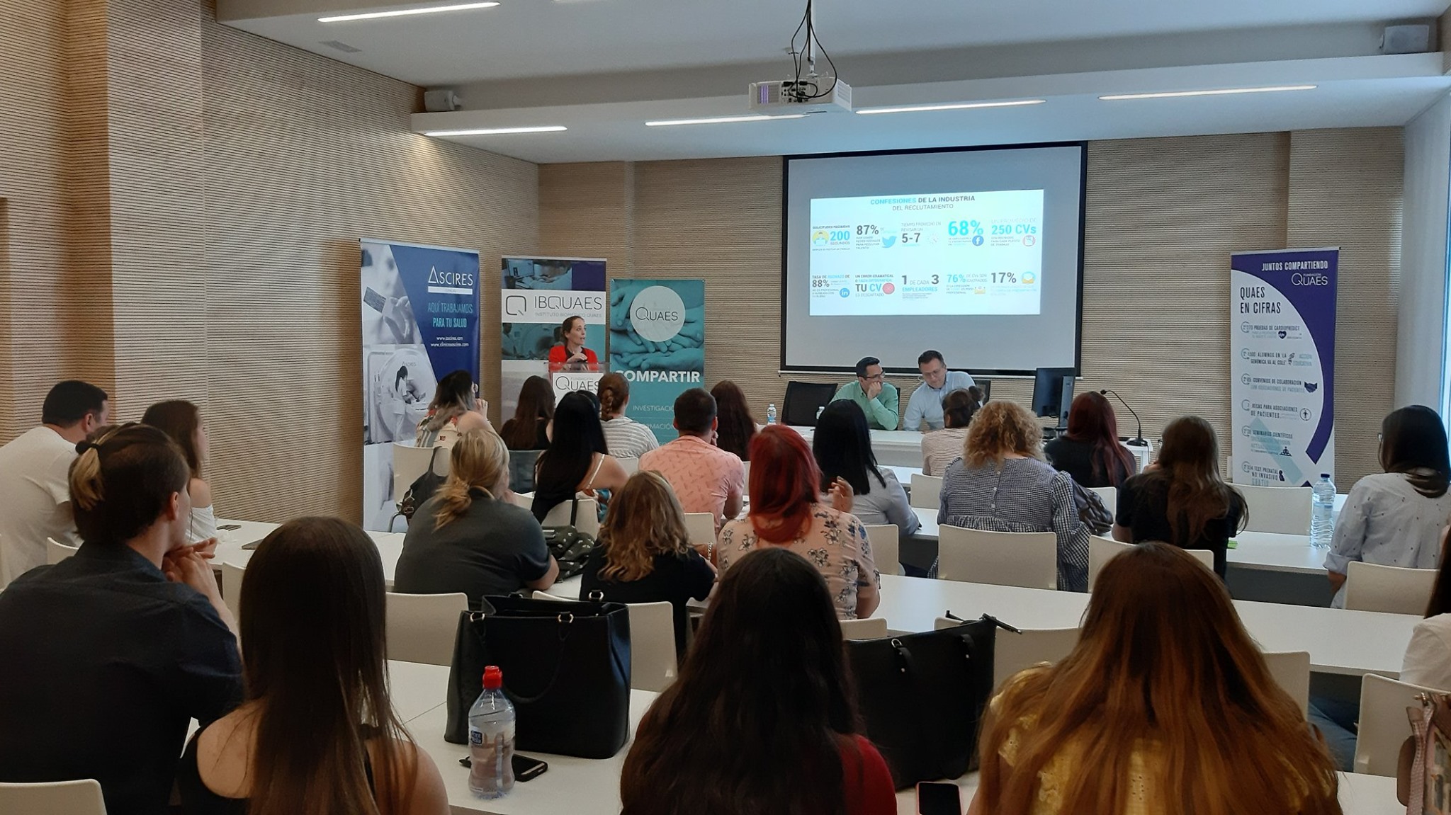 Hemos celebrado en la sede de la Fundación Quaes la Jornada Alumni 2019 donde estudiantes graduados en Técnico de Laboratorio, Técnico en Anatomía Patológica y Técnico en Imagen para el Diagnóstico han recibido los consejos para su entrada en el ámbito laboral y han conocido nuestros cursos de posgrado.