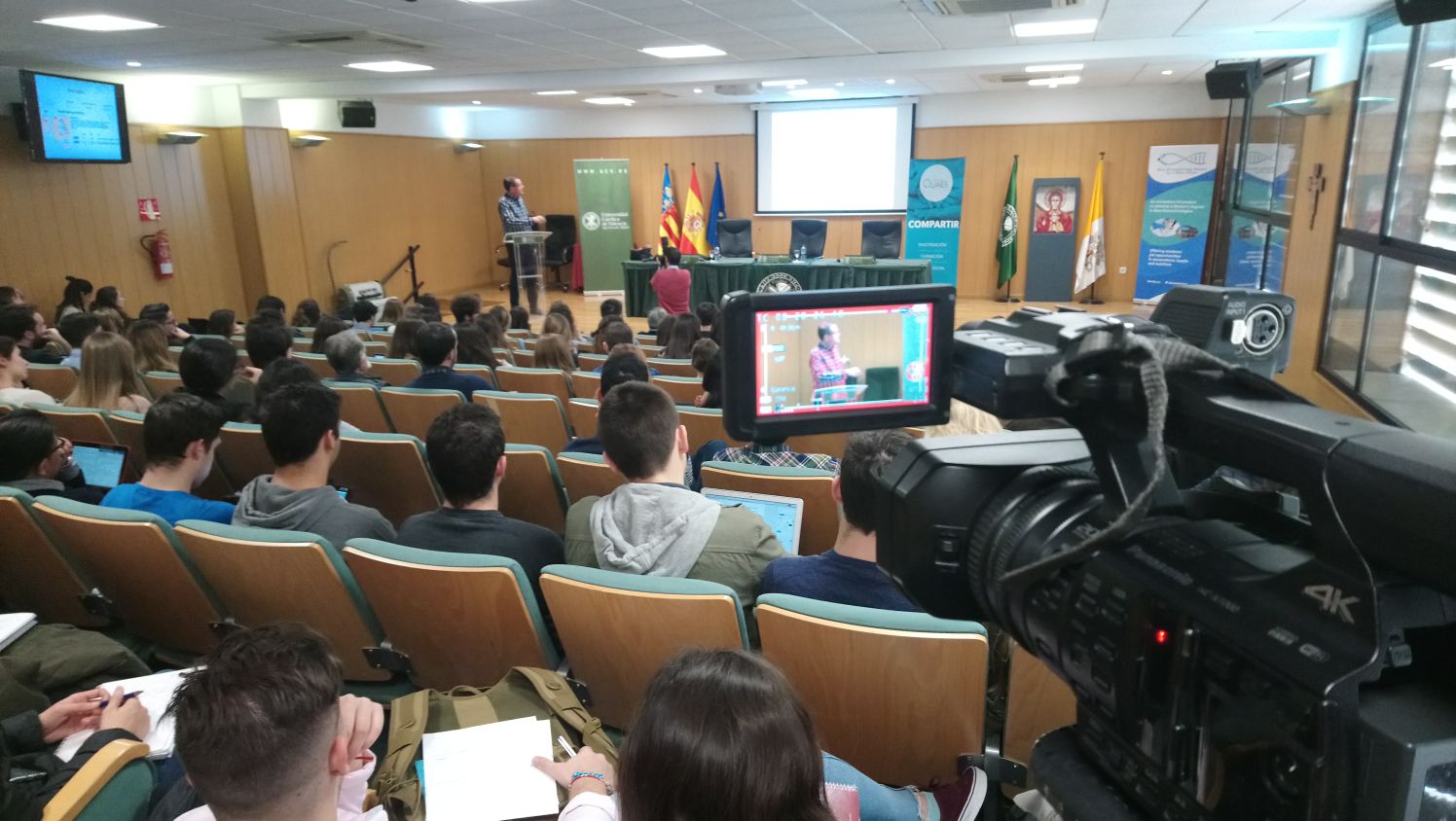 La charla ha sido un completo éxito tanto de participación de público como de la propia ponencia del Dr. Tarón que ha hablado sobre la Farmacogenética y Farmacogenómica. Muchos alumnos tanto de la UCV colmo también de la Universidad Politécnica de Valencia y un nutrido grupo de profesionales de la salud han compartido la charla del Dr. Tarón. El especialista ha querido incidir en su conferencia en dejar claras las diferencias entre las dos especialidades “aunque el objetivo de ambas es que sirven para individualizar el tratamiento, para buscar el mejor tratamiento para cada paciente”, decía tras la charla. Y expresaba: “las dos sirven para pacientes de especialidades o dolencias distintas desde un cáncer a patologías cardiovasculares, como a la nefrología en tratamientos aplicados a los trasplantes o también para pacientes de salud mental. Hay cabida pata todas estas especialidades en nuestra búsqueda de hacer un mejor tratamiento”.