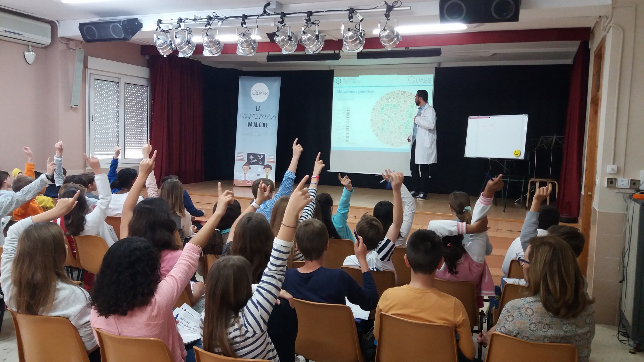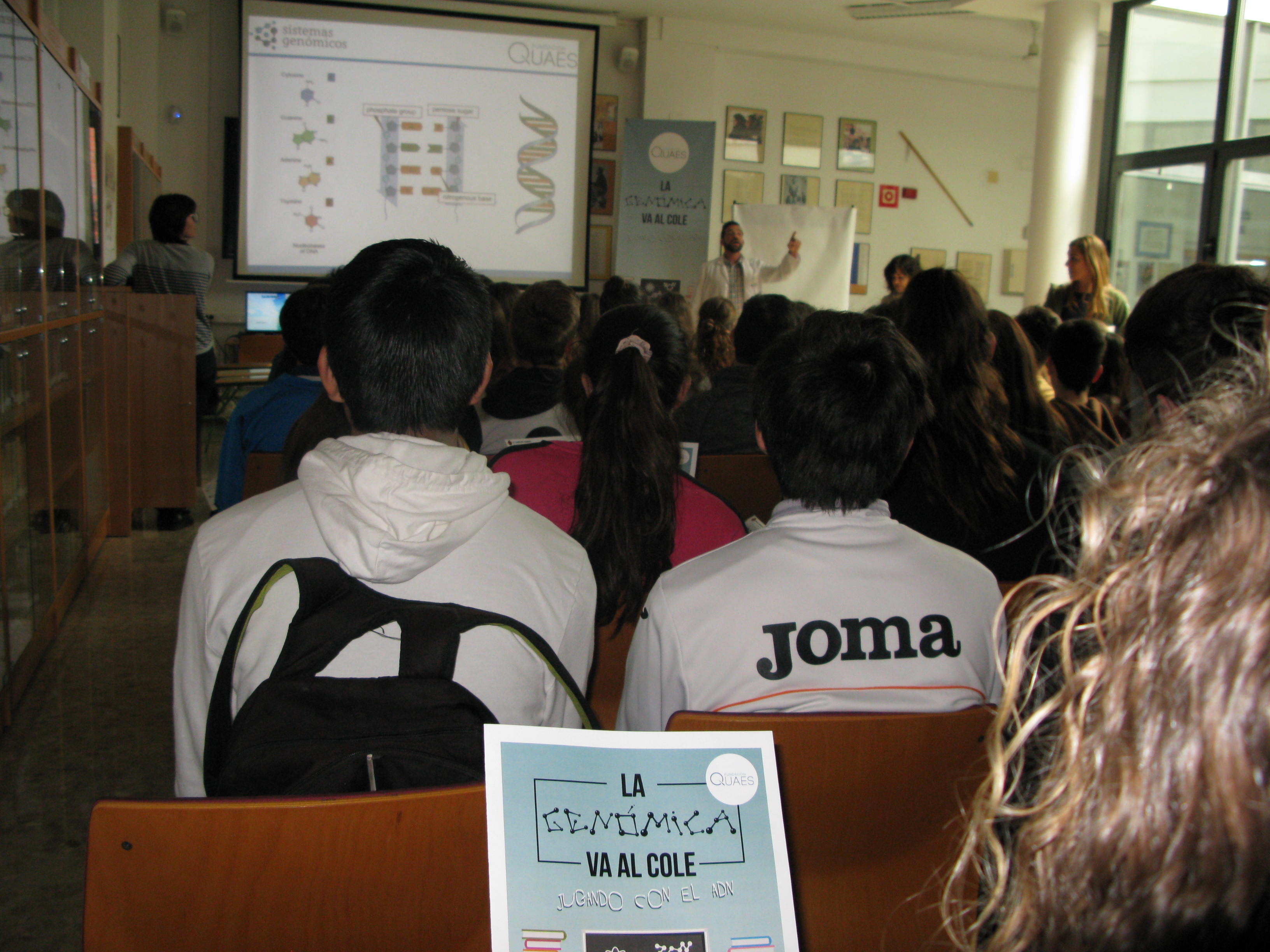 Jorge Aguadé, de la Fundación QUAES, explica cómo está funcionando el proyecto: “Lo cierto es que nos ha sorprendido la buena acogida tanto de los chavales como de los profesores que han avalado la calidad científica de las charlas del Dr. Diego. Nuestra intención es la de compartir el conocimiento y también intentamos que los chavales tengan en cuenta la posibilidad de enfocar su futura carrera profesional hacia el mundo de la genómica en sus diferentes aspectos que estamos convencidos de que va a demandar muchos profesionales en los próximos años”.