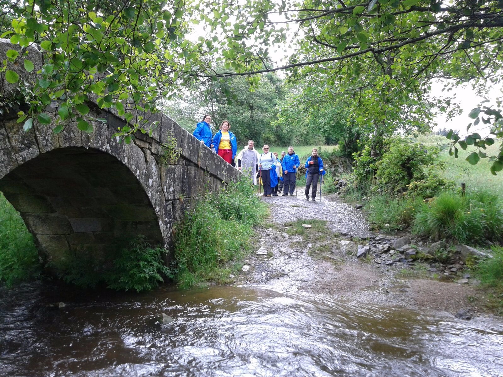 Por consenso con el equipo de médicos, la doctora Martínez y el Dr. Micó, ambos de la Semergen, el plan para el día varió de unos peregrinos a otros. Hubo un pequeño grupo que caminó los 15 kilómetros que separan las dos localidades de Palas de Rei y Melide. A otros, el autobús que ha proporcionado la Fundación QUAES a la expedición, les dejó dos kilómetros más adelante por lo que anduvieron unos 13 mientras que un pequeño grupo anduvo la mitad de la jornada junto al Dr. Micó, que se incorporó hoy a la aventura directamente desde el aeropuerto de Santiago.