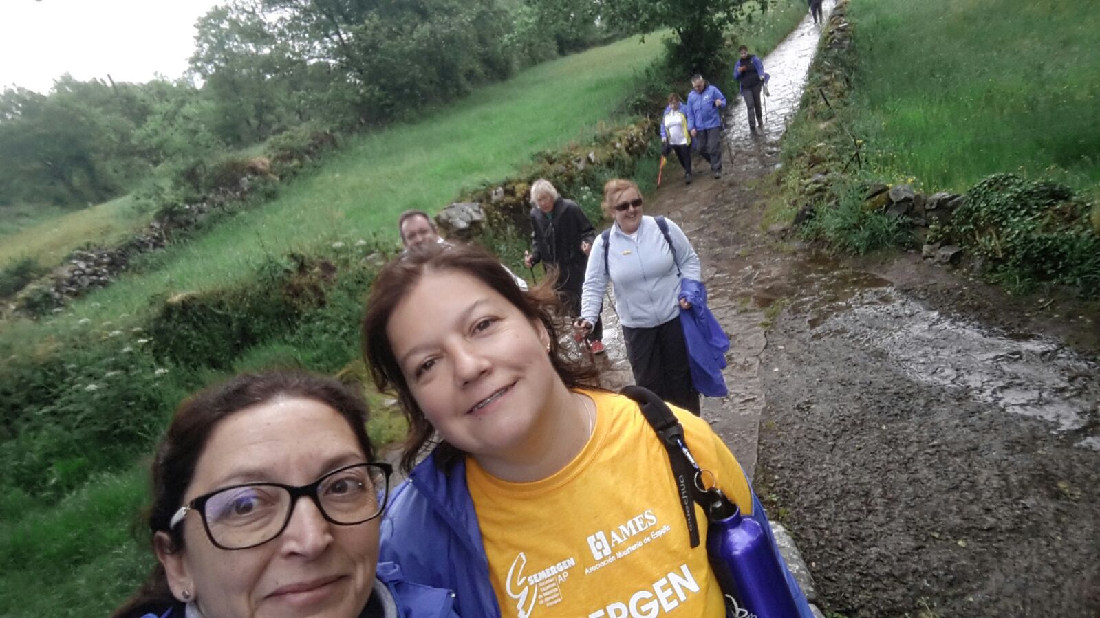 La presidenta de la Asociación, la valenciana Pilar Robles, comentaba sobre el primer día de caminata jacobea: “Ha sido un día estupendo, aunque nos ha llovido mucho y hemos seguido andando bajo la lluvia. La verdad es que hemos respondido físicamente muy bien. Tan bien que durante la comida algunos de nosotros ya hablaban de que en 2017 hay que volver a repetir la experiencia, pero esta vez con más socios de AMES”. Sobre la jornada explicaba: “Hemos salido a las ocho como nos recomendaban los médicos, la verdad es que estamos siendo muy obedientes (decía irónica). Estamos cansados ahora porque a los kilómetros hay que añadir que hemos tenido que pisar mucho barro y eso complica la caminata. Para esta tarde no hemos previsto ningún acto, simplemente descansar y dar una pequeña vuelta por Melide antes de cenar y acostarnos. Mañana nos espera un día muy duro con cansancio acumulado”.