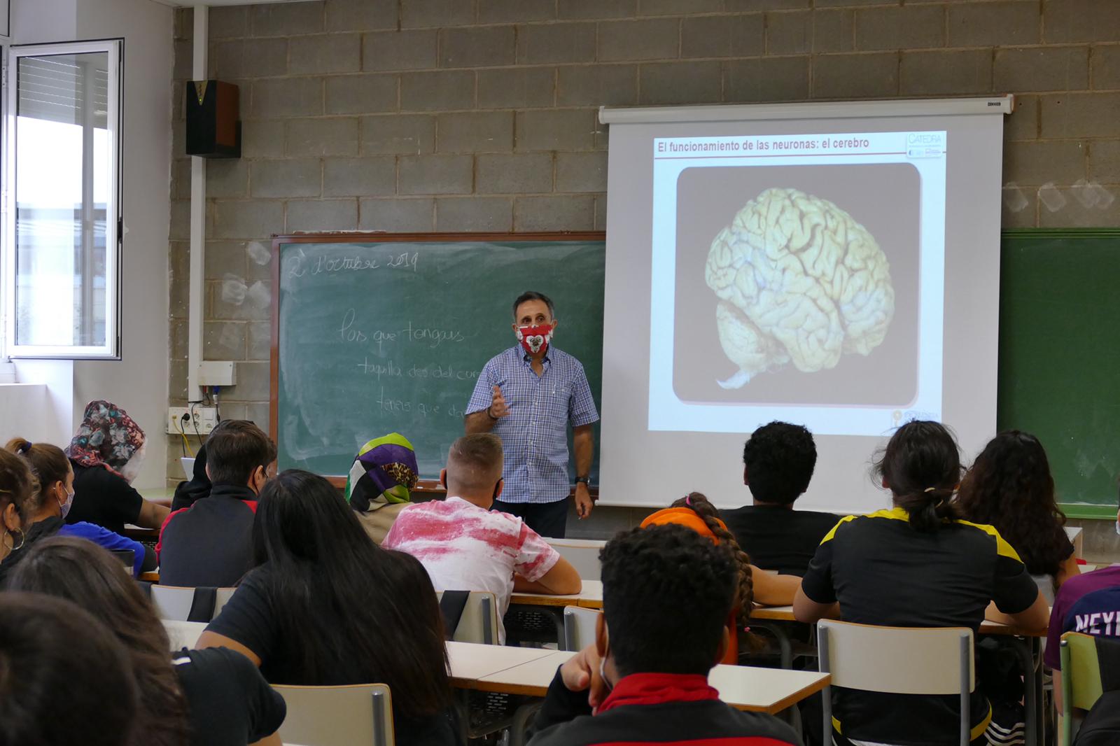 La charla ha tomado como punto de partida datos básicos sobre el funcionamiento del cerebro humano, las neuronas y su sinapsis, y los diferentes tipos de neurotransmisores. Y ha continuado llevando a los asistentes a conocer las diferentes clases de memoria que existen y las zonas del cerebro con las que están relacionadas, además de las posibles alteraciones que dan lugar a ciertas patologías. Los alumnos han mostrado un gran interés y han realizado muchas preguntas, dando lugar a una charla muy interactiva.
