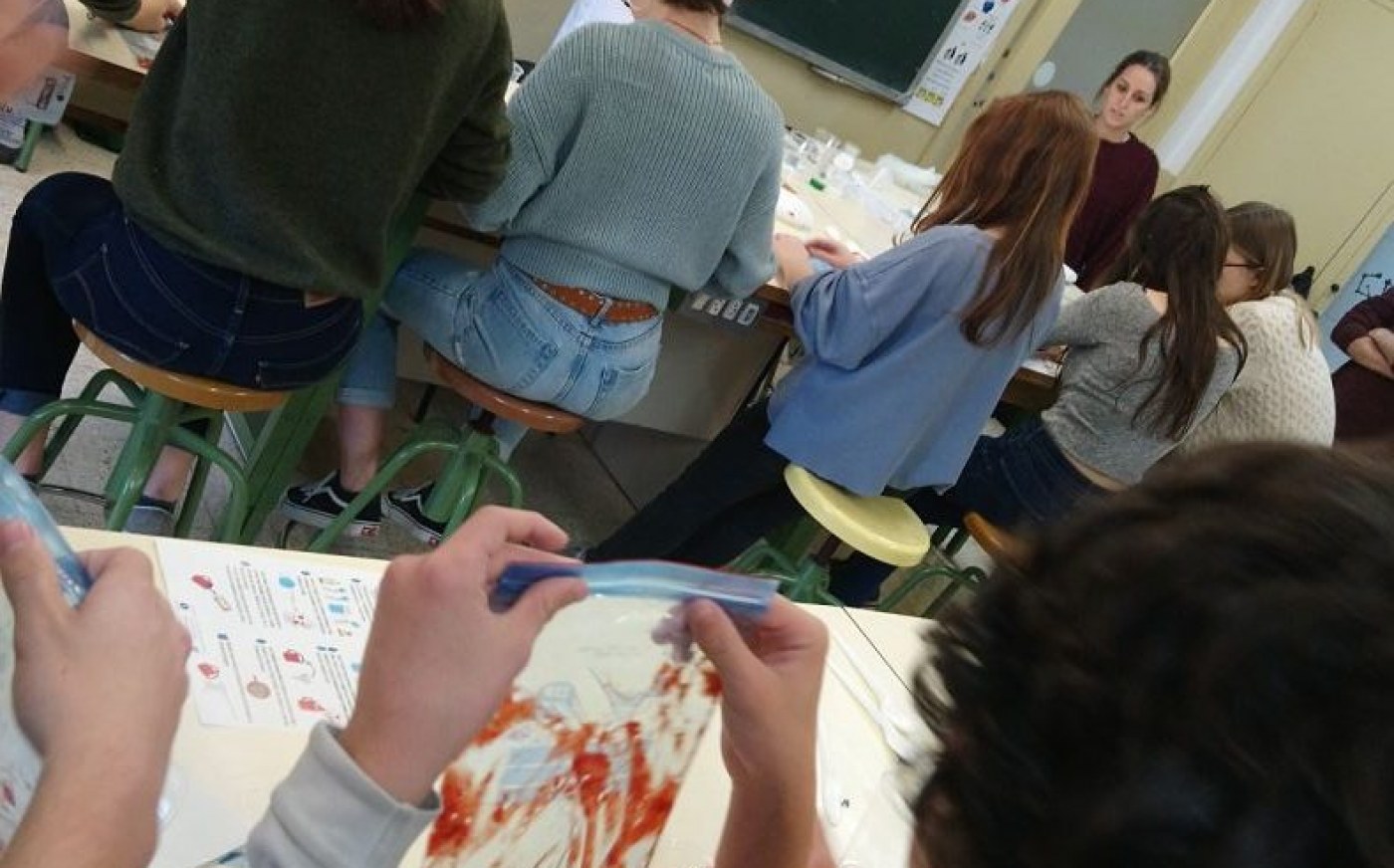 Casi 60 chavales de 12 años pasaron una mañana en contacto con la genómica y aprendiendo cómo es el apasionante mundo del ADN. Los niños se repartieron en dos grupos que coincidía con las dos clases del colegio. Primero Mayte Gil, doctora en Biología especialista en Biología Molecular, les ha explicado que es el ADN, dónde se encuentra, cuál es su función, etc… y así darles las bases para poder entender y realizar los experimentos con el Doctor en Genética Humana Dan Diego.