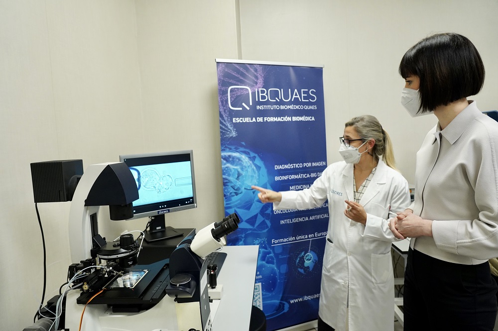 En el encuentro, la ministra ha visitado también el Instituto Biomédico QUAES, en el que impartimos formación especializada en Genómica, Diagnóstico por Imagen y Medicina Nuclear, y ha mostrado especial interés en el laboratorio de análisis genómico, en el que realizamos el curso de Biopsia Embrionaria, único en España con acreditación universitaria.