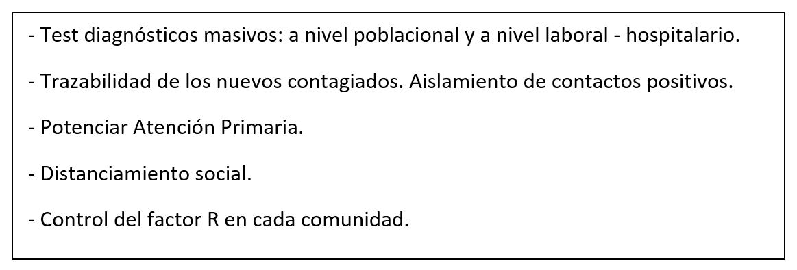Todos estos factores y alguno más han hecho que tardemos 8 semanas en llegar a un R0 < 1, es decir, cuando podemos controlar al virus, pero de poco nos va a servir si durante el desarrollo de la escalada no aprendemos de los fallos y tomamos medidas. El Ro de 1 (+/-) se puede mantener si seguimos con medidas de distanciamiento social que sean a la vez compatibles con la vuelta de la economía y el restablecimiento social de la normalidad, y con nuevas medidas que nos permitan saber en todo momento dónde nos encontramos.
