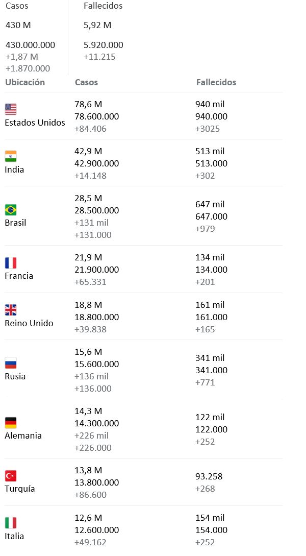 De JHU CSSE COVID-19 Data y Our World in Data · Última actualización: hace 1 día