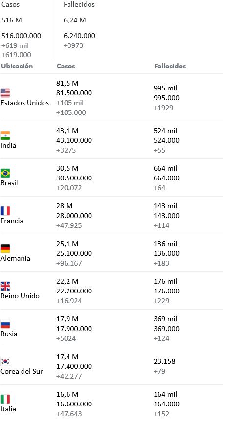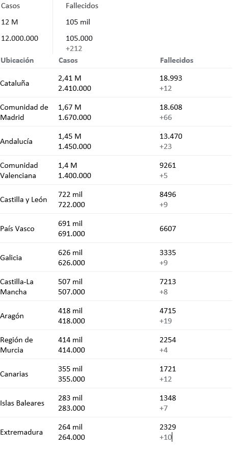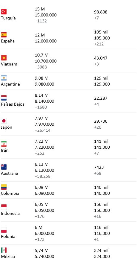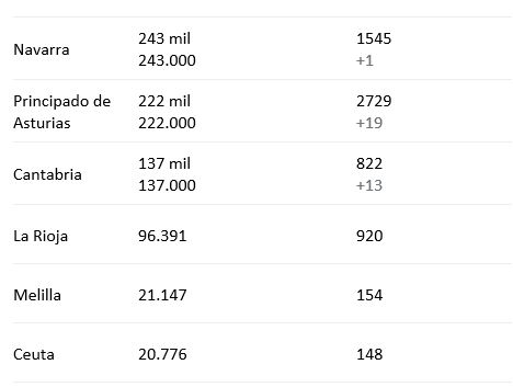 El signo más (+) indica los casos nuevos confirmados respecto al día anterior·