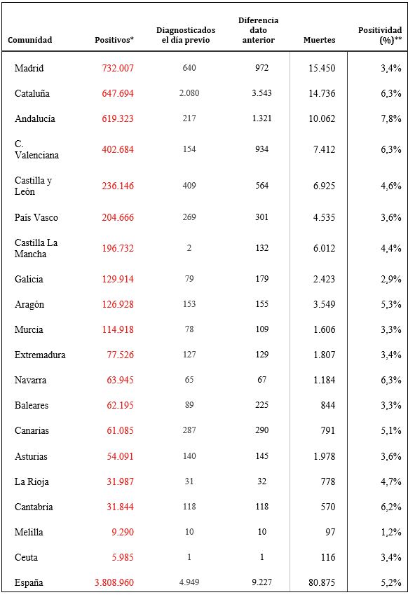 * Casos totales confirmados por PCR hasta el 10 de mayo, por PCR e IgM (sólo si hay sintomatología compatible) según la estrategia de vigilancia desde el 11 de mayo y PCR y pruebas de antígeno desde noviembre.