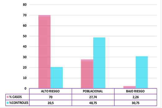 En el año 2013 se publicó el primer estudio amplio en cáncer de mama por parte del Consorcio Internacional de Cáncer de Mama ( Michailidou K et al, Nat Genet 353, 2013). Se analizaron 100.000 SNPs en 50.000 mujeres con cáncer y mujeres de la población general procedentes de diferentes países europeos y norteamericanos. Se identificaron 41 SNPs de riesgo que permitieron en posteriores estudios estratificar a sucesivas poblaciones en mujeres de muy alto riesgo (alrededor de un 40% de probabilidades de desarrollar cáncer) y de muy bajo riesgo (menos del 5% de probabilidad) en comparación con el riesgo poblacional, un 12% aproximadamente. Uno de estos estudios se publicó en el año 2020 en población española con un número mayor de SNPs, 94, e incorporando diferentes factores de riesgo como son los antecedentes familiares, edad de menopausia, edad al primer hijo, densidad mamaria y biopsias previas (Triviño JC et al, BMC 2020). Los resultados combinando los datos genéticos y personales, permitieron agrupar a un 20% de las mujeres de la población general como de alto riesgo, con un valor predictivo positivo del 70%, mientras que en el grupo de mujeres con cáncer solo un 2% se hubieran clasificado como de bajo riesgo (valor predictivo negativo 99%) (Fig.1)
