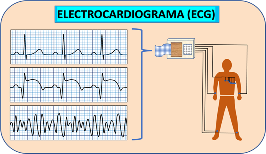 Las cardiopatías abarcan desde problemas relacionados con las válvulas del corazón, hasta los relacionados con la irrigación coronaria o con la función cardíaca tanto mecánica como eléctrica. En relación con la cardiopatía isquémica los síndromes coronarios agudos, cuya manifestación más característica es el infarto agudo de miocardio, se diagnostican considerando la sintomatología y las alteraciones del ECG. La activación del “código infarto”, dirigido a abrir la arteria coronaria cuya oclusión es responsable del infarto, depende en gran medida de la detección de signos electrocardiográficos concretos y definidos (elevación del segmento ST). Para el diagnóstico de la angina de pecho que ocurre durante el esfuerzo cuando existen estenosis severas de las coronarias, entre las técnicas disponibles se encuentran las ergometrías (pruebas de esfuerzo), en las que se objetiva la isquemia por la aparición de dolor anginoso y cambios electrocardiográficos característicos como la depresión del segmento ST. En las valvulopatías, en las cardiopatías congénitas y en la hipertensión arterial, las sobrecargas de presión y de volumen que originan hipertrofia y/o dilatación de las cavidades cardiacas dan lugar a modificaciones del ECG cuya detección complementa la información obtenida con técnicas de imagen como la ecocardiografía-Doppler. En la insuficiencia cardiaca, aunque no existen signos electrocardiográficos específicos de este síndrome, sus causas dan lugar a cambios detectables en el ECG (por ejemplo, signos de cardiopatía isquémica o de sobrecarga ventricular). En el ámbito de las arritmias cardiacas el registro electrocardiográfico durante las mismas es fundamental para su diagnóstico y clasificación. Así ocurre en taquiarritmias como la fibrilación auricular (la más frecuente), taquicardias supraventriculares paroxísticas, o bradiarritmias como las originadas por el bloqueo completo de la conducción aurículo-ventricular. Su diagnóstico preciso, necesario para aplicar los tratamientos correctos (por ejemplo: implante de marcapasos en los bloqueos completos), requiere la obtención de registros durante los episodios arrítmicos y éstos pueden ser transitorios y/o paroxísticos. Para objetivarlos se han desarrollado sistemas ambulatorios como los englobados bajo el nombre de Holter de ECGs, que reciben ese nombre del ingeniero que en 1949 comenzó a desarrollarlos. Por otra parte, las características basales del ECG permiten identificar o sospechar la presencia de enfermedades sistémicas, intoxicaciones, alteraciones electrolíticas o enfermedades hereditarias asociadas a muerte súbita (canalopatías y miocardiopatías).