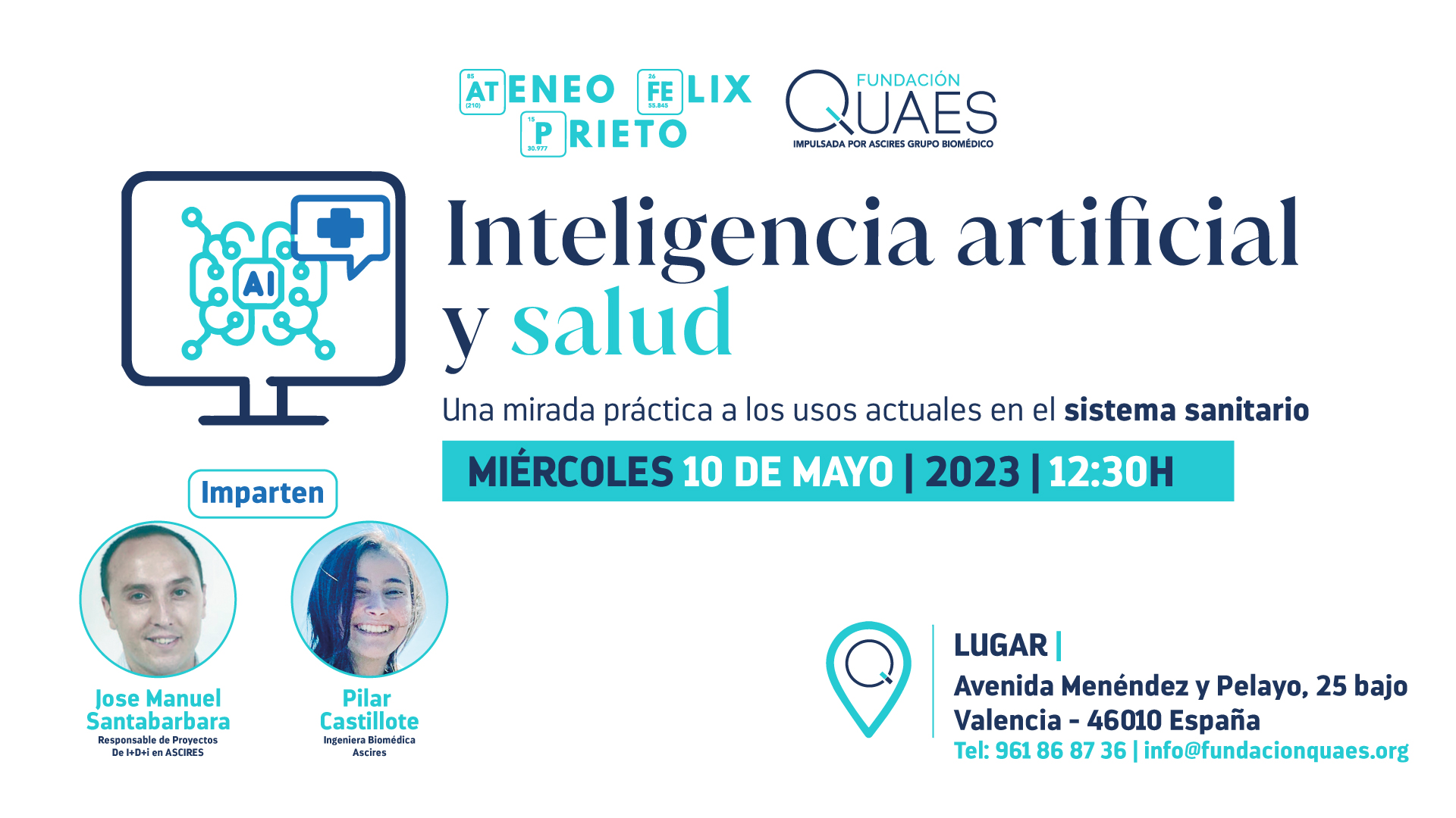 El titular de los datos personales puede ejercer gratuitamente sus derechos de acceso, rectificación, cancelación, oposición y limitación al tratamiento, así como a no ser objeto de decisiones basadas únicamente en el tratamiento automatizado de sus datos, dirigiéndose por escrito a Fundación Quaes, Calle Colón número 1, 46004 Valencia o a la dirección de correo electrónico dpo@ascires.com,debiendo incluir su nombre, apellidos, un domicilio o dirección de correo electrónico a efecto de notificaciones, indicando expresamente el derecho que desea ejercitar y adjuntando documento acreditativo de su identidad.
