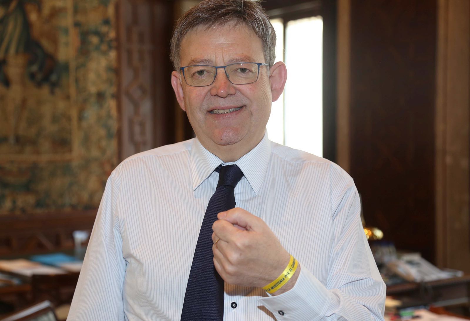 Quien también se sumó al Día Mundial de la Miastenia fue el presidente de la Generalitat Valenciana, Ximo Puig. El político valenciano se comprometió la semana pasada a hacer un acto solidario hoy con motivo del Día Mundial de la Miastenia. Y no falló. Se hizo una foto con la pulsera que le regaló en el encuentro Pilar Robles y colgó un tuit con esa foto y las dos que le enviaron desde AMES: la de la llegada al Monte del Gozo y la de la puerta de la Catedral de Santiago.