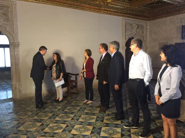El pasado jueves 26, el President de la Generalitat Valenciana, Ximo Puig, nos recibió en el Palau de la Generalitat. A la reunión acudieron representantes de Asociación de la Miastenia de España (AMES) con su presidenta Pilar Robles, la Sociedad Española de Médicos Generalistas (Semergen) que estaba representada por Rafael Micó, vicepresidente nacional y de la Fundación QUAES, con su secretaria Miriam Pastor a la cabeza. El máximo responsable político de la Comunitat estuvo durante más 40 minutos hablando con sus invitados sobre la Miastenia, la medicina primaria y el camino de Santiago.