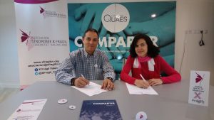 La Asociación XFragil de la Comunitat Valenciana y al Fundación QUAES han firmado un acuerdo de colaboración. El pasado viernes 13 de abril Tomás Coronado como presidente de la Asociación y Miriam Pastor en calidad de Secretaria del patronato de la Fundación rubricaron un acuerdo que no hace más que poner en papel la sinergia que ambas entidades ya han emprendido desde hace tiempo.